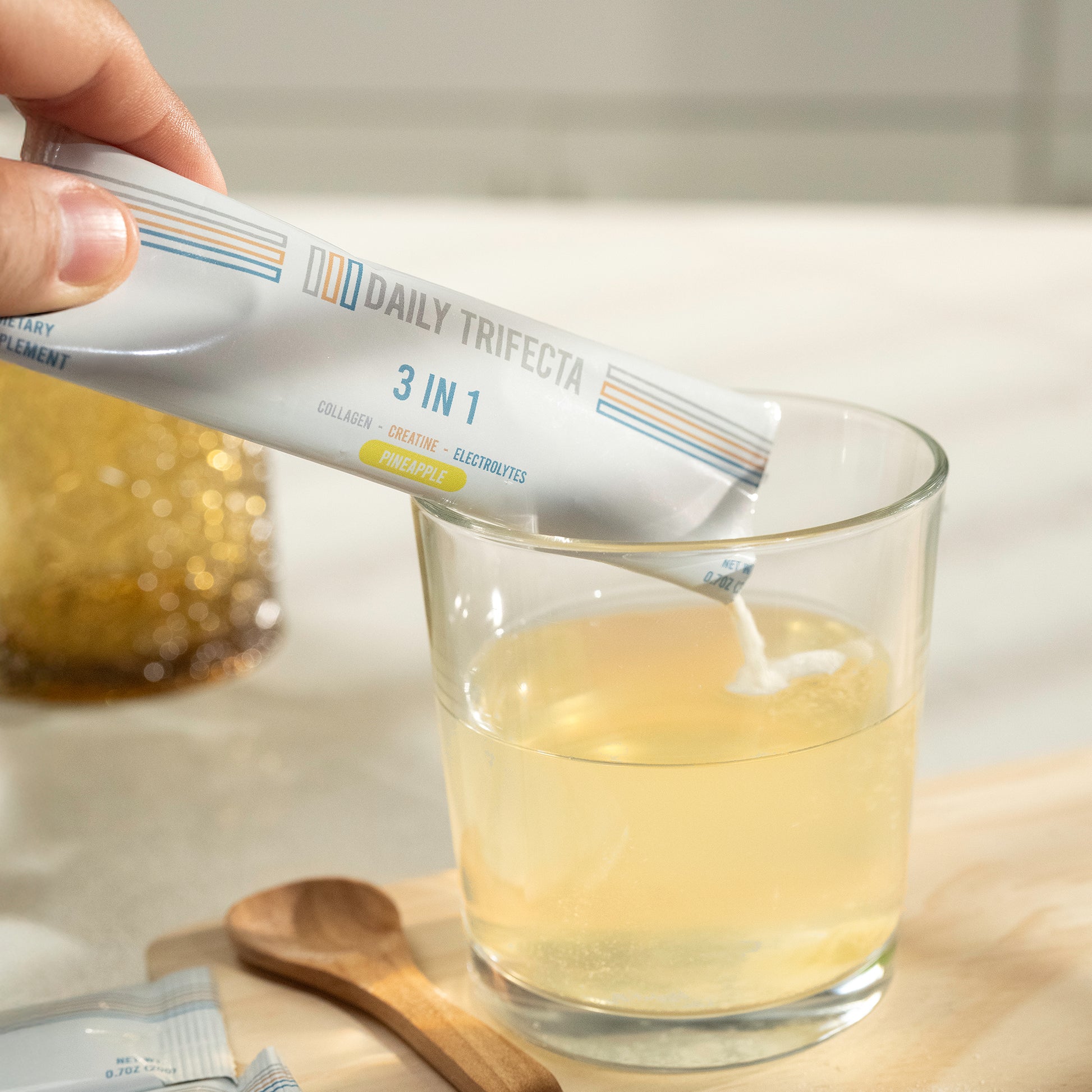 Daily Trifecta is a clean, science-backed supplement combining collagen, creatine, and electrolytes for comprehensive health support. Enhance muscle performance, promote joint and skin health, and achieve optimal hydration—all in one convenient formula.
